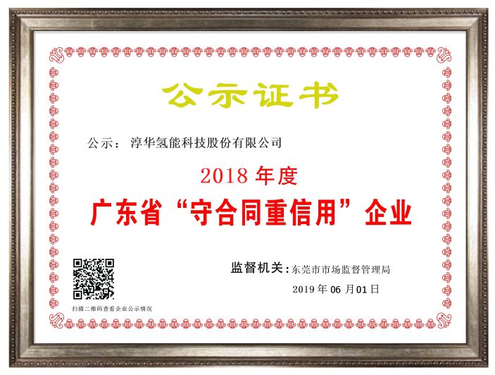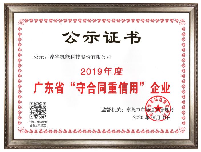 2019 Guangdong Province "Contract-honoring and Credit-keeping" Enterprise Certificate
